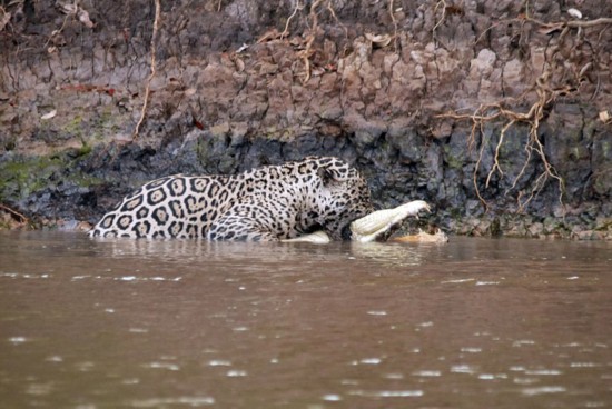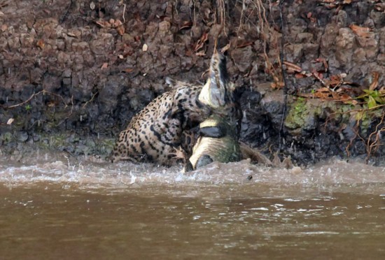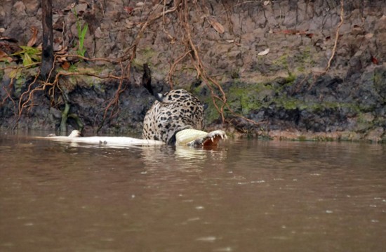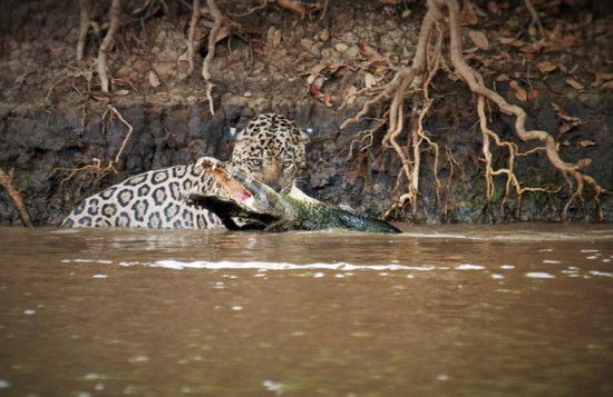 一只饑餓的美洲豹在河岸旁徘徊,在水中凱門鱷毫不知情的情況下,美洲豹迅速地跳入水中與凱門鱷展開搏斗。美洲豹大獲全勝后,將凱門鱷拖到森林里享用。