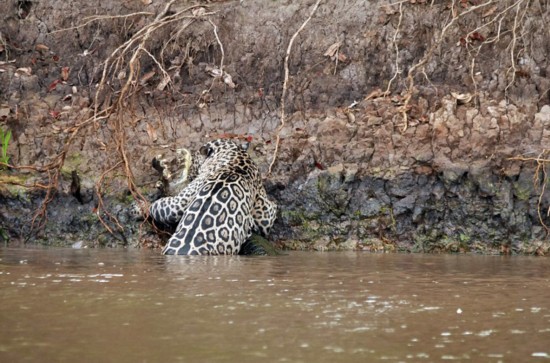 據(jù)英國《每日郵報(bào)》報(bào)道,近日,在巴西北潘塔納爾的一條小河岸邊,女導(dǎo)游利恩·吉利斯(Leen Gillis)拍攝到了一場(chǎng)長(zhǎng)達(dá)20分鐘的精彩戰(zhàn)斗。